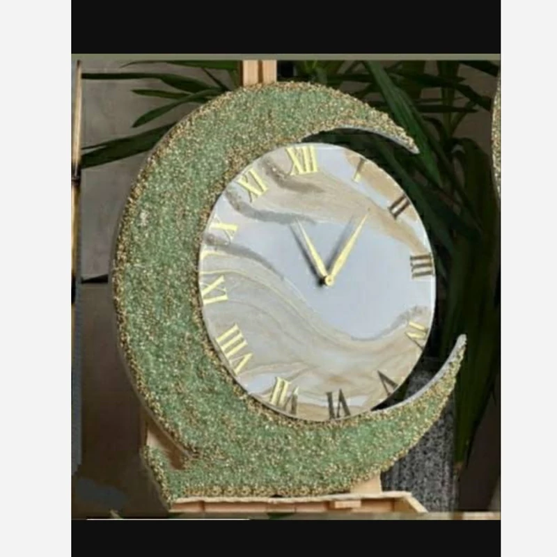 ترکیب بی‌نظیر درخشندگی سنگ‌های سبز، حاشیه‌ی طلایی و اعداد رومی کلاسیک جلوه‌ای لوکس و آرامش‌بخش به دکور شما می‌بخشد.