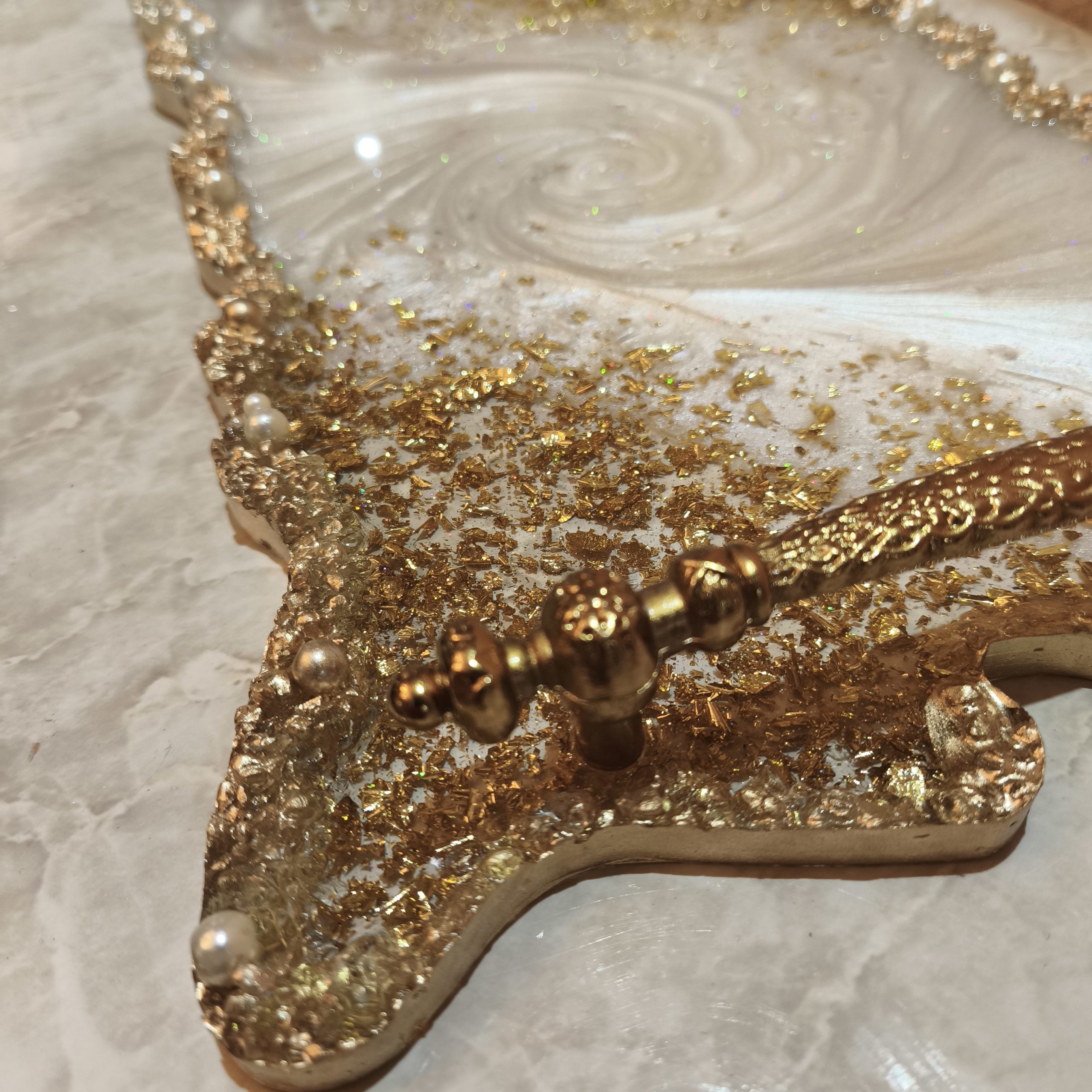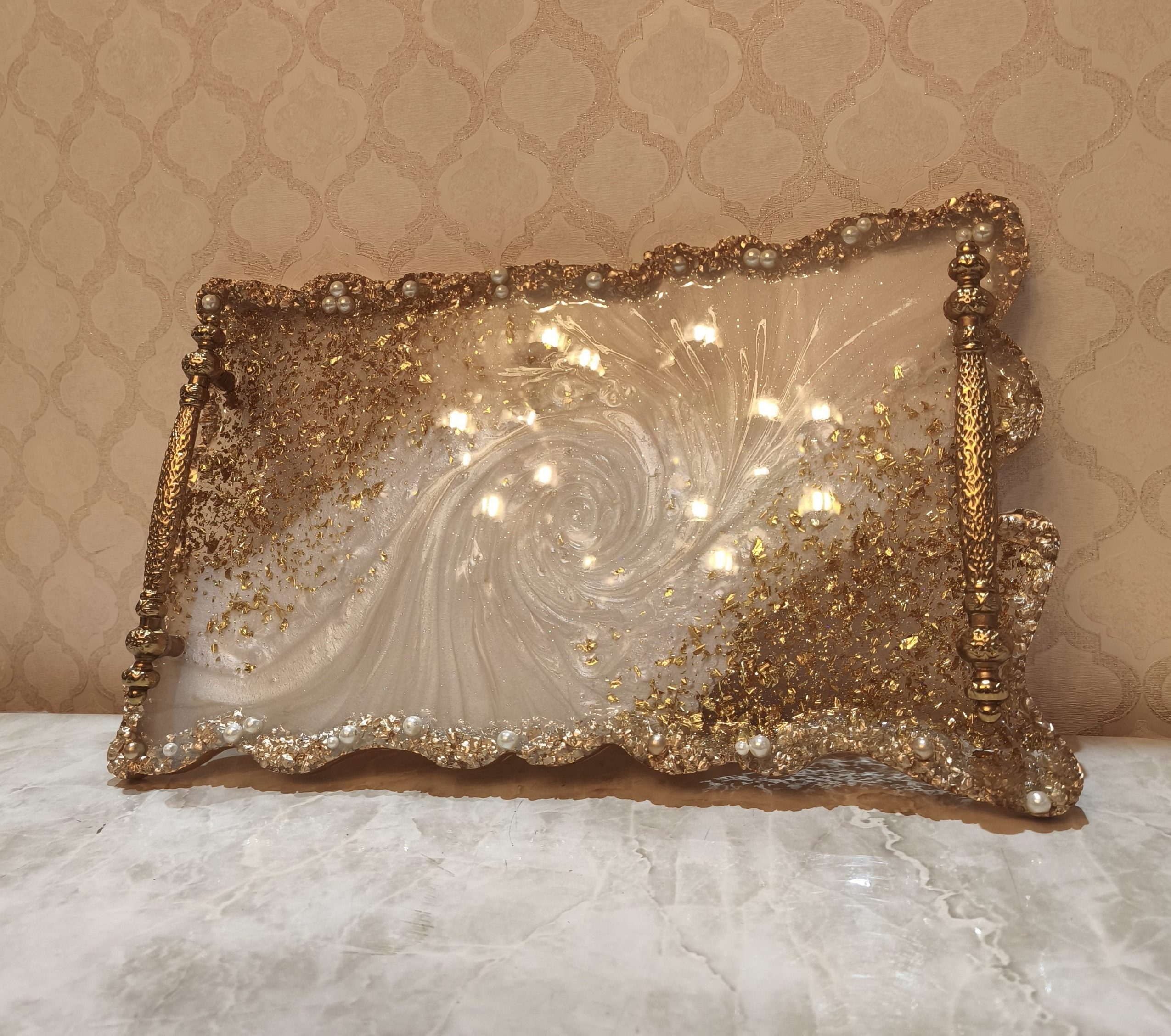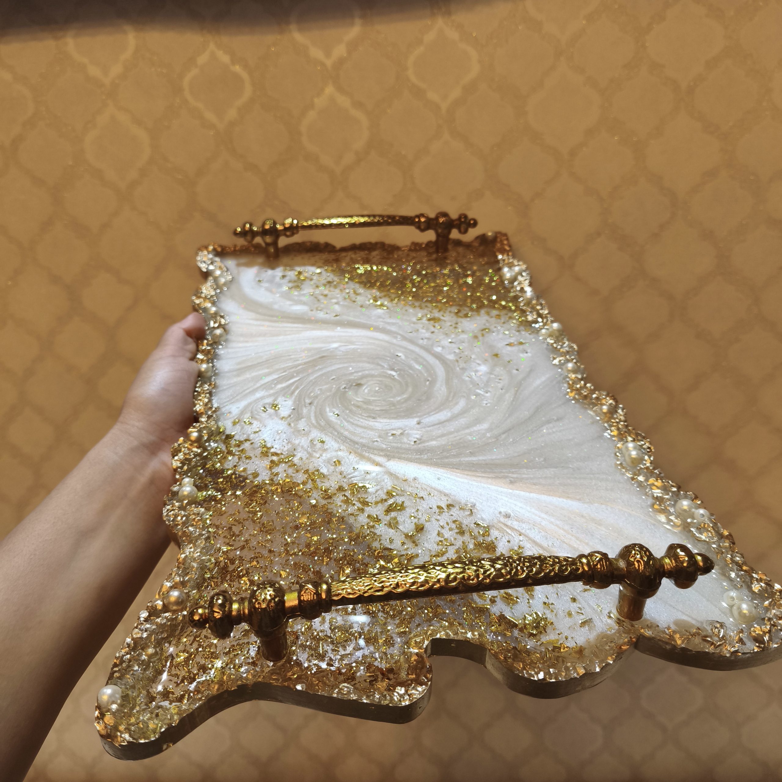 این سینی زیبا، شاهکاری از هنر دست است که با تلفیق ظرافت و درخشش، جلوهای منحصربهفرد به میز پذیرایی شما میبخشد.