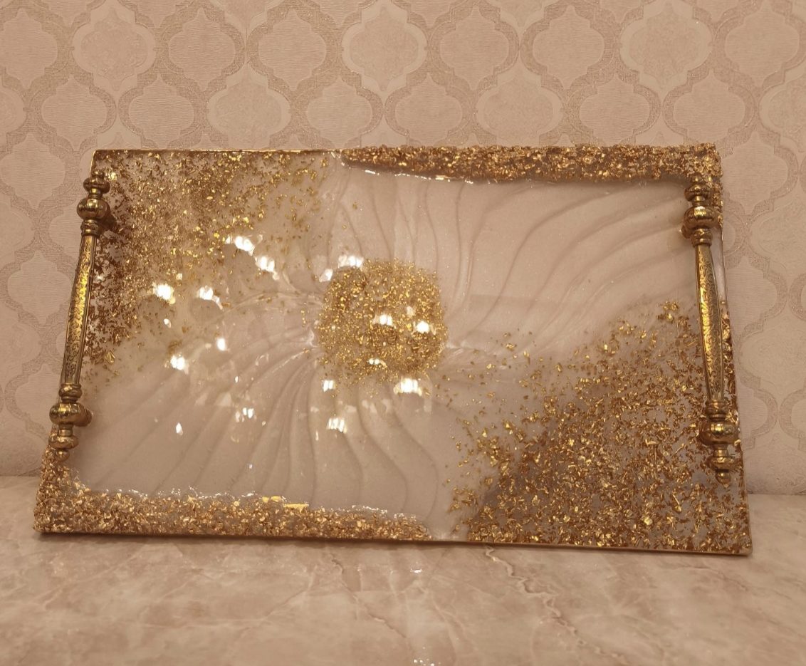 این سرویس رزینی دستساز، ترکیبی از هنر، خلاقیت و ظرافت است. طراحی موجدار و استفاده از طلایی براق، جلوهای لوکس و خاص به این اثر بخشیده تا در هر محیطی بدرخشد.