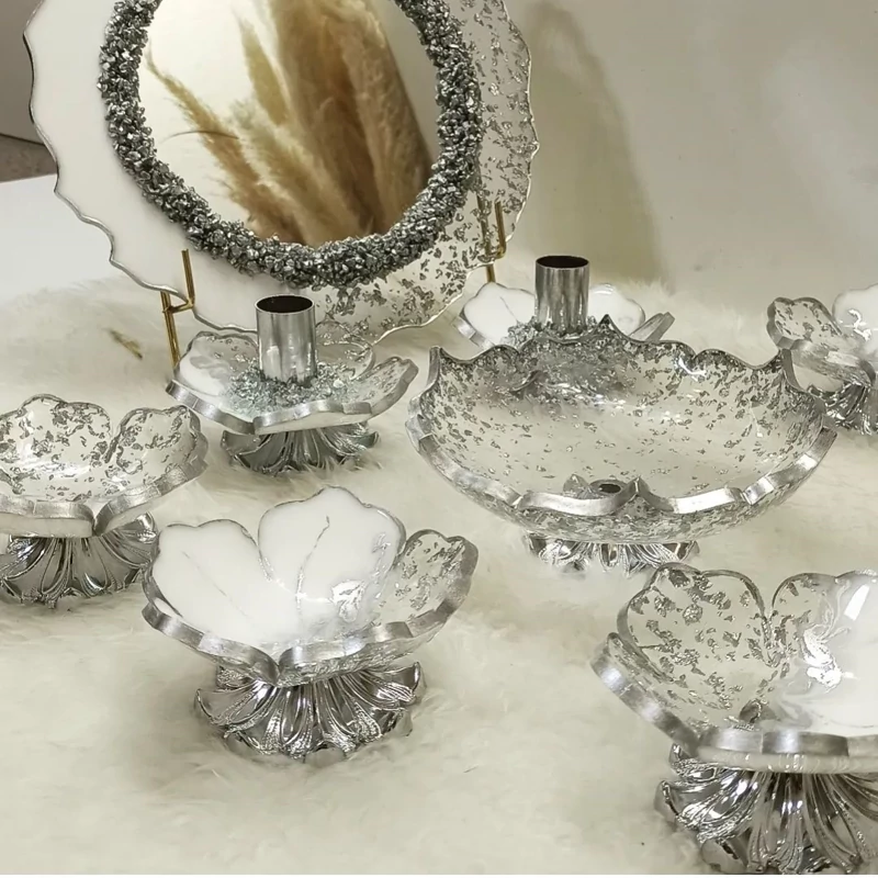 مشتری میتواند رنگهای دقیق رزین را طوری انتخاب کند که با پالت رنگی غالب منزل (مانند طلایی و سفید، یا آبی فیروزهای و…) کاملاً هماهنگ شود. این ویژگی تضمین میکند که هفت سین شما صرفاً یک شیء موقت برای نوروز نباشد، بلکه بخشی دائمی و هماهنگ از دکوراسیون خانه باشد.
